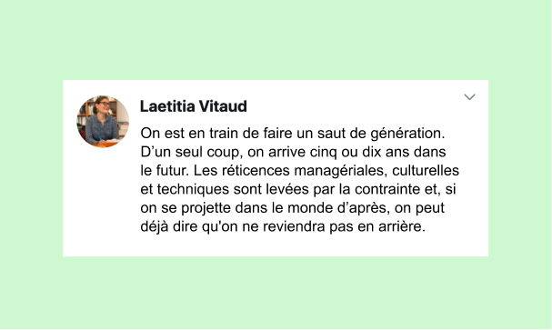 C’est cette citation de Laëtitia Vitaud - écrivaine, conférencière et rédactrice en chef de Welcome to the Jungle - qui nous a inspiré une série de 5 webinars “le monde d’après”.